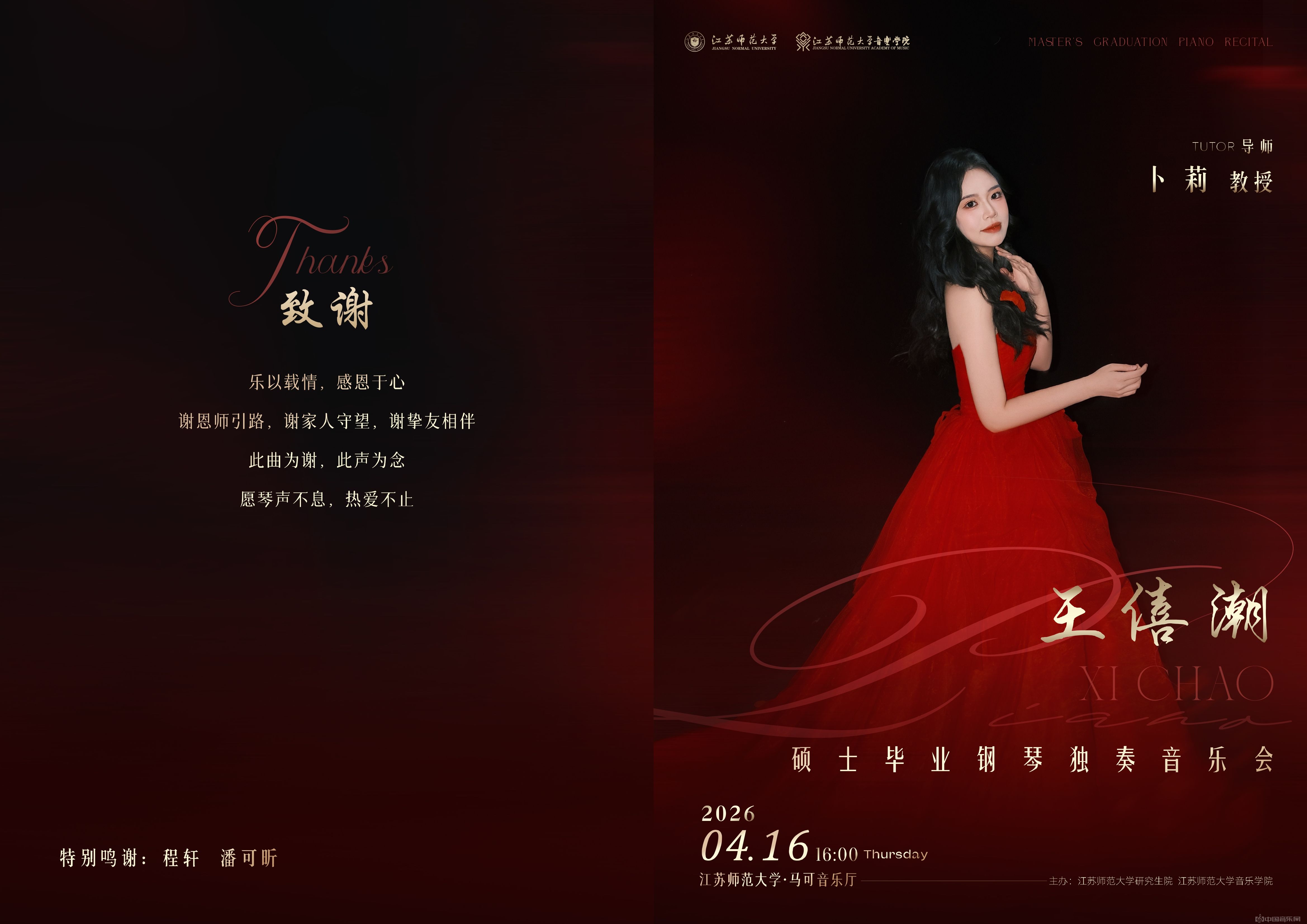 预告 | 江苏师范大学王僖潮硕士毕业钢琴独奏音乐会