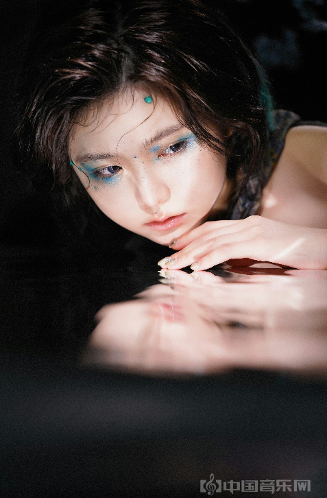 而双笙在其中的造型也非常抢眼,湿发造型搭配随意泼墨似的蓝色油彩,莹润通透的皮肤被高光打造出波光粼粼的感觉,宛如静谧夜晚里浅斟低唱的海中精灵。没有刻意修饰五官,却更能突出干净纯粹的面部表情,神秘又浪漫。