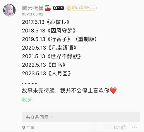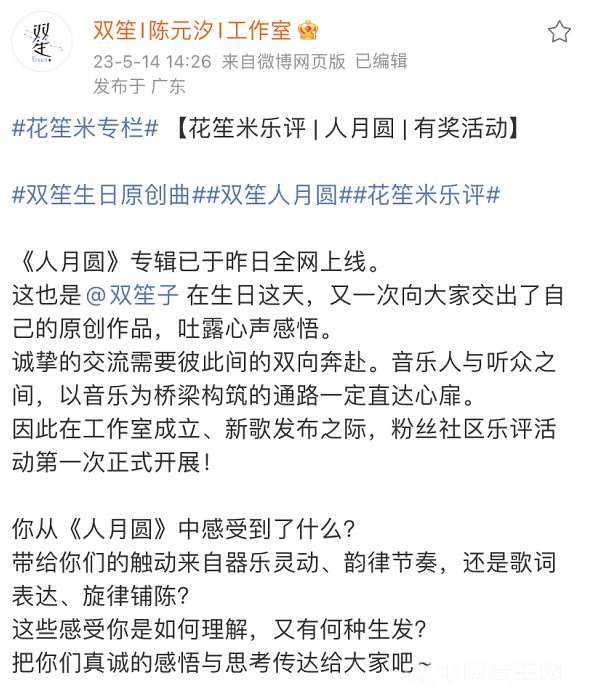 2023年5月13日,对于双笙来说,不仅仅是她23岁的生日,更是双笙工作室正式宣告成立的日子。因此在新歌《人月圆》发布之际,双笙工作室也第一时间推出了粉丝社区乐评活动,引发了很多粉丝响应,从歌词的角度给出了自己的思考。