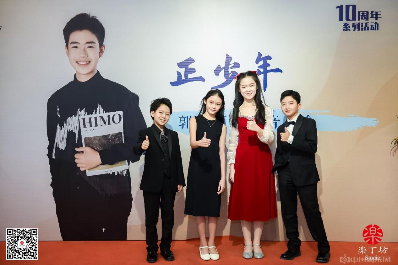 音乐会现场楽丁坊优秀学员代表组成的嘉宾主持团罗咏亭,许思彤,张晓墨,龚科皓。